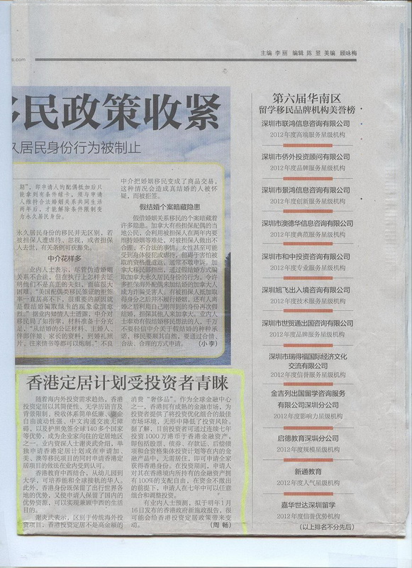 2012年12月6日《深圳商报》B06版-《香港移民:1000万港元的投资路还可以走多远?》