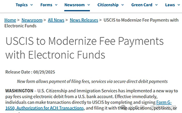「美国移民」公民及移民服务局(USCIS)调整付款方式!